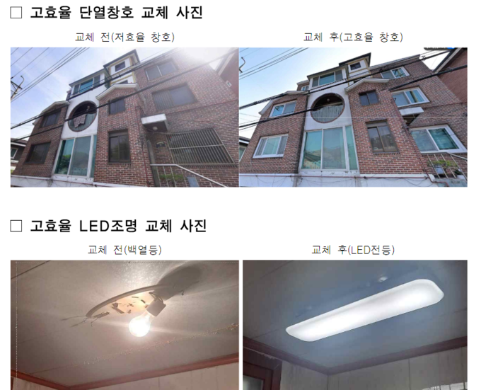 해당 지원사업은 노후화된 창호와 조명을 고효율 제품으로 교체해 에너지 개선과 쾌적한 주거환경을 조성하기 위한 취지다.