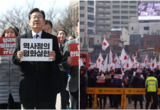 野의, 한일정상회담 규탄 집회에, 尹지지자 일장기 들고 집회? 사진은 합성된 '가짜'
