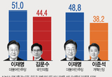 김문수 44.4% vs 이재명 51.0%… 이준석 38.2% vs 이재명 48.8% [에이스리서치]