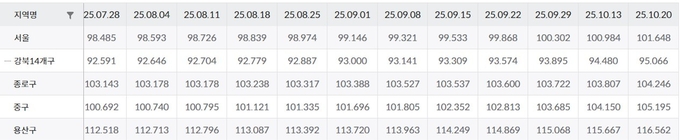 10.15 주택시장안정화대책 발표에도 불구하고, 서울 아파트 가격 격차는 오히려 확대되면서 양극화를 나타내는 지수가 역대 최고치를 기록했다. 또 10.15 대책이 발표되기 전인 지난 13일보다 발 표 후인 20일, 서울 아파트매매가격지수는 되레 올라갔다.