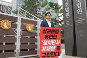 김장겸 국민의힘 의원이 방송문화진흥회(방문진) 이사 임명 집행정지 가처분 신청을 인용한 강재원 부장판사를 규탄하는 1인 시위에 나섰다. 김 의원은 2일 서울행정법원 앞에서 “제12재판부(강재원 부장판사)는 법적 규정과 절차에 따라 이뤄진 행정부의 인사 조치를 가처분으로 중단시킴으로써 정부의 국정운영에 심대한 지장을 초래했다"며 "사법권의 본질적 한계를 벗어나 삼권분립의 원칙을 위반한 것”이라고 비판했다. 그는 “문재인 정부 당시 위법하게 진행된 고대영 KBS 사장, 강규형 KBS 이사 해임 건에 대해 법원은 ‘집행 부정지’ 원칙에 따라 해임 집행정지 가처분에 대해서는 모두 기각했고 본안 소송에서 해임을 취소했다”며 “행정기관의 인사는 법률상 명백하고 중대한 위법이 존재하지 않는 이상 존중돼야 한다”고 강조했다. 앞서 이상휘 국민의힘 미디어특위 위원장도 지난달 29일 서울행정법원 앞에서 강 부장판사를 규탄하는 1인 시위를 진행했다. 특위는 앞으로도 릴레이 1인 시위 등 방식으로 규탄을 이어갈 방침이다. 서울행정법원은 지난달 26일 권태선 방문진 이사장과 김기중, 박선아 이사 등 세 명이 방송통신위원회를 상대로 낸 새 이사 6명의 임명처분 집행정지 신청을 인용했