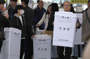 ●연합뉴스·연합뉴스TV 정례 여론조사 “민주 41%, 국힘 30%” '내일이 총선이라면 지역구 의원으로 어느 정당 후보에게 투표할 것인가'라는 질문에 더불어민주당이 국민의힘을 오차범위 밖에서 앞서고 있다는 여론조사 결과가 3일 나왔다. 연합뉴스와 연합뉴스TV가 공동으로 여론조사업체 메트릭스에 의뢰해 지난달 30∼31일 전국 만 18세 이상 남녀 1천 명을 대상으로 한 정례 여론조사에서 '국민의힘 후보를 뽑겠다'는 응답은 30%, '내일이 총선이라면 민주당 후보를 뽑겠다'는 응답은 41%를 각각 기록했다. 양당 간 격차는 11%포인트(p)로, 오차범위(95% 신뢰수준에서 ±3.1%p) 밖이다. 직전 조사(3월 2∼3일)와 비교해 국민의힘 후보에게 투표하겠다는 응답은 3%p 줄었고, 민주당 후보에게 투표하겠다는 응답은 15%p가 올랐다. 이번 조사에서 개혁신당을 뽑겠다는 응답은 3%, 새로운미래를 뽑겠다는 답변은 1%로 조사됐다. '아직 결정하지 않음'은 20%, '지지하는 정당이 없음'은 3%로 나타났다. 민주당 후보에게 투표하겠다는 응답 비율은 강원·제주(40%→32%) 단 한 곳을 뺀 모든 권역과 전 연령대에서 상승했다. 특히 50대(30%→ 52%), 대