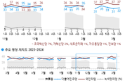 한국갤럽은 15일 정당 지지도는 국민의힘이 37%, 더불어민주당이 32%, 조국혁신당이 7%로 집계됐다고 밝혔다. 한국갤럽은 지난 12∼14일 전국 만 18세 이상 1천2명을 대상으로 조사(95% 신뢰수준에 표본오차 ±3.1%p)한 여론조사 결과를 이날 발표했다. 이에 따르면 정당 지지도에서 국민의힘은 37%로 직전 조사와 동일했다. 더불어민주당은 32%로 1%p 올랐다. 조국혁신당은 1%p 상승한 7%를 기록했다. 더불어민주당과 조국혁신당의 지지율을 합한 범야권 지지율은 40%로, 오차범위 내에서 여당과 경합 중인 것으로 나타났다. 개혁신당은 2%, 녹색정의당·새로운미래·자유통일당·진보당은 각 1%로 집계됐다. 지지하는 정당이 없는 무당(無黨)층은 17%로, 직전 조사보다 2%p 줄었다. 한국갤럽은 "민주당과 조국혁신당은 40·50대 핵심 지지 기반을 공유하며, 민주당 지지자 셋 중 한 명은 투표 의향 비례대표 정당으로 조국혁신당을 선택했다"고 밝혔다. 이어 "최근 민주당 지지도 변동은 공천 갈등 외에 조국혁신당 등장에 영향을 받은 것으로, 사실상 지지층 감소가 아닌 '분화'로 볼 수 있다"고 분석했다. 4·10 총선 관련 조사에서는 '현 정부를 지원하기
