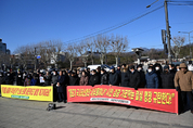 보수우파 시민단체인 자유대한호국단이 8일 서울 송파구 쿠팡 본사 앞에서 '쿠팡 응원 결의대회'를 열었다. 단체는 이재명 정부가 쿠팡을 '표적 탄압'하고 주장하면서 그 탄압의 결과 중국 거대자본에게 우리나라 물류망을 내주게 될 것이라고 경고했다. 오상종 단장은 "우리가 여기에 모인 것은 단지 기업 하나를 옹호하기 위해서가 아니다"라며 "정치적 목적에 휘둘려 무너지는 대한민국 경제를 구하기 위함"이라고 호소했다. 오 단장은 "지금 쿠팡에 가해지는 전방위적 압박은 공정과 노동이란 가면을 쓴 정치적 표적 탄압"이라며 "다른 기업에는 관대하면서도 혁신을 주도해온 쿠팡에게만 가혹한 잣대를 들이미는 이재명 정권의 의도는, 기업의 자율성을 억압하고 길들이려는 것"이라고 주장했다. 그러면서 "국내 대표 플랫폼인 쿠팡의 손발을 묶는 행위는 결국 알리-테무와 같은 중국 거대 자본에게 국내 안방시장을 내주는 결과가 될 게 명확하다"며 "중국 자본이 국내 물류망을 장악하면 대한민국은 (중국의) 경제 식민지로 전락할 것"이라고 우려했다. 송원근 기자