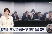 이재명 정부가 법인세를 인상하려는 걸 두고 MBC 뉴스데스크가 ‘정상화’라고 표현해 물의를 빚고 있다. 법인세 인상을 ‘정상화’라고 주장하는 것은 여권의 입장일 뿐이며, 지난 2023년 윤석열 정부에서 법인세를 낮춘 건 여야 합의를 통해서였지 당시 정부가 밀어붙인 게 아니었다. 지난달 29일 뉴스데스크는 “정부 여당이 법인세 최고세율을 1%p 올려 25%로 되돌리기로 했다”면서 앵커 멘트를 통해 “윤석열 정부가 추진했던 이른바 부자감세를 정상화하겠다는 겁니다”라고 보도했다. 공영언론과 지상파 방송의 편파·왜곡 보도에 대해 감시활동을 하고 있는 공정언론국민연대(공언련)는 이날 뉴스데스크를 ‘프레임 왜곡, 편파 보도’라고 규정했다. 공언련은 “윤석열 정부에서의 법인세율 인하를 위한 세법 개정은 2023년 12월 여야 합의로 통과된 것”이라며 “따라서 이번 상향 조정을 ‘정상화’라고 하는 것은 여당의 일방적 주장일 뿐”이라고 설명했다. 이어 “그런데도 공영방송 앵커가 이를 ‘정상화’라며 여당의 입장만을 대변하고, 결국 윤석열 정부의 정첵이 ‘비정상’이었던 것처럼 보이게 하는 편파 진행을 했다”고 지적했다. 이에 공언련은 MBC 뉴스데스크가 방송심의규정 제9조 ‘공