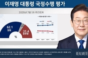 이재명 대통령의 국정수행에 대해 '잘한다'는 긍정 평가는 62.1%, '잘못한다'는 부정 평가는 31.4%라는 여론조사 결과가 7일 발표됐다. 여론조사회사 리얼미터가 지난달 30일부터 이달 4일까지 전국 18세 이상 유권자 2508명을 대상으로 이 대통령 국정수행 평가 조사를 실시한 결과 이같이 집계됐다. '잘 모름'이라는 응답은 6.5%였다. 긍정 평가는 전주 대비 2.4%포인트(p) 올랐고, 부정 평가는 2.2%p 내렸다. 뉴시스에 따르면, 긍정 평가는 서울(7.6%p↑· 61.1%), 부산·울산·경남(4.4%p↑· 58.2%), 대구·경북(3.8%p↑· 53.9%), 인천·경기(1.1%p↑· 63.5%), 남성(4.2%p↑· 60.9%), 30대(5.9%p↑· 56.8%), 60대(3.6%p↑· 61.6%), 40대(2.2%p↑· 78.2%), 20대(1.4%p↑· 47.0%), 50대(1.2%p↑· 73.1%), 중도층(2.9%p↑· 63.3%), 보수층(1.6%p↑· 34.3%)에서 올랐다. 반면 광주·전라(2.1%p↓· 76.9%), 대전·세종·충청(2.0%p↓· 59.9%)에선 지지율이 내렸다. 이번 조사의 오차범위는 95% 신뢰수준에 ±2.0%