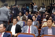 국민의힘은 9일 법원이 이재명 대통령의 공직선거법 위반 파기환송심을 연기한 것을 두고 "사법부가 정치권력에 굴복했다"며 비판을 쏟아냈다. 김용태 비상대책위원장은 이날 오후 서울 여의도 국회에서 열린 의원총회에서 "오늘 서울고법의 (재판 연기) 판단은 한마디로 사법의 유예"라며 "권력에 순응한 개별 재판부의 결정"이라고 비판했다. 김 비대위원장은 "서울고법은 지난 15일 첫 공판을 열겠다고 발표했지만 이재명 대통령 측은 선거운동 기간을 공평히 보장해달라며 기일 연기를 요청했고 법원은 그대로 수용했다"며 "이번에 또 (기일을) 미뤘으니 법원 스스로 통치 권력의 눈치를 보고 있다고 자인한 것이나 다름없다"고 성토했다. 더불어민주당을 향해서는 "이쯤 되면 사법부를 헌법이 부여한 독립기관이 아니라 정치권력의 하명기관쯤으로 여기는 것"이라며 "법 앞에 모든 국민이 평등하다는 헌법정신이 무너지고 있다. 죄 있는 권력자는 법망을 피해도 괜찮다는 건가"라고 반문했다. 권성동 원내대표도 이날 의원총회에서 "헌법 84조는 새로운 재판을 위한 대통령 기소가 불가능하다는 뜻이지 이미 진행 중인 재판을 중단해야 한다는 의미가 아니라는 건 초등학생도 알 수 있다"며 "권력의 바람 앞에