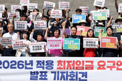 노동계가 내년에 적용될 최저임금으로 1만1500원(월 240만3500원)을 요구했다. 올해 최저임금(1만30원)보다 14.7% 인상돼야 한다는 주장이다. 또 최저임금을 심의하는 최저임금위원회(최임위) 근로자위원들은 이재명 대통령을 향해 최저임금 인상과 함께 특수고용(특고)·플랫폼 노동자 등에 대해서도 최저임금을 적용할 것을 촉구했다. 11일 뉴시스에 따르면, 전국민주노동조합총연맹(민주노총), 한국노동조합총연맹(한국노총), 모두를 위한 최저임금 운동본부 등은 이날 오전 서울 세종문화회관 앞에서 기자회견을 열고 2026년 적용 최저임금 요구안을 발표했다. 현재 최임위에선 내년도 적용될 최저임금을 심의 중인데, 이날 노동계가 최초 요구 수준을 밝힌 것이다. 올해 최저임금은 시간당 1만30원으로 지난해(9860원)보다 1.7% 올랐다. 양대노총 등 노동계는 이날 1만30원에서 1470원(14.7%) 인상된 시간당 1만1500원을 요구했다. 월 209시간 근로한다는 가정 하에 월급 240만3500원이다. 인상 근거는 근로자 실질임금(물가 반영한 임금) 하락과 생계비 부담 가중이다. 2021년~2025년 경제지표(경제성장률+물가상승률)와 최저임금 인상률 격차는 11.8