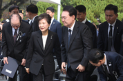 윤석열 대통령이 26일 박정희 전 대통령 추도식장에서 박근혜 전 대통령과 만났다. 윤 대통령은 순방을 마치고 귀국하자마자 국립서울현충원에서 열린 박 전 대통령 서거 제 44주기 추도식에 참석했다. 1980년부터 매년 민족중흥회 주관으로 열려온 박 전 대통령 추도식에 현직 대통령이 참석한 것은 이번이 처음이다. 윤 대통령은 추도사에서 “박정희 전 대통령이 ‘하면 된다’는 기치로 국민을 하나로 모아 한강의 기적이라는 세계사적 위업을 이루어내셨다”며 “지금 세계적인 복합위기 상황에서 우리는 박정희 전 대통령의 정신과 위업을 다시 새기고 이를 발판으로 다시 도약하는 대한민국을 만들어야 한다”고 전했다. 윤 대통령은 추도식이 끝난 뒤 박근혜 전 대통령과 함께 박정희 전 대통령 묘소를 참배했다. 윤 대통령은 묘소 참배 땐 다른 유족 없이 박 전 대통령과 독대했다. 윤 대통령이 박 전 대통령을 만난 것은 지난해 5월 대통령 취임식 이후 약 17개월 만이다. 그동안 보수진영에서는 윤 대통령이 검사시절 박근혜 전 대통령과 이명박 전 대통령을 구속하며 보수층에 상처를 냈다는 인식이 있었다. 그러나 이날 두 사람이 손을 맞잡는 모습을 보여줌으로써 보수 진영의 단결이 부각되는 모