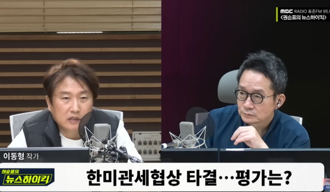 지난달 30일 ‘권순표의 뉴스하이킥’에는 이동형 작가가 출연했다. 이 작가는 ‘이번 관세협상은 우리의 승리’라며, 이 대통령의 경기지사 시절 계곡 정비에 대해 “협상에서 설득을 한 거예요”라고 찬양했다.