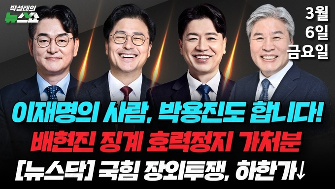 박성태의 뉴스쇼 지난 6일 방송된 '뉴스닥' 코너에는 김종혁 전 국민의힘 최고위원과 부승찬 더불어민주당 의원, 서왕진 조국혁신당 원내대표가 출연했다.
