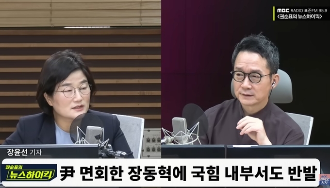 지난달 20일 ‘권순표의 뉴스하이킥’에는 장윤선 전 오마이뉴스 기자가 출연했다. 장 기자는 윤 전 대통령 면회에 대해 친한계에서 비판이 나오는 걸 언급하면서 “국민의힘 당원 게시판에 김재섭 김종혁 정성국을 처단하라는 글이 올라왔다”고 말했다.