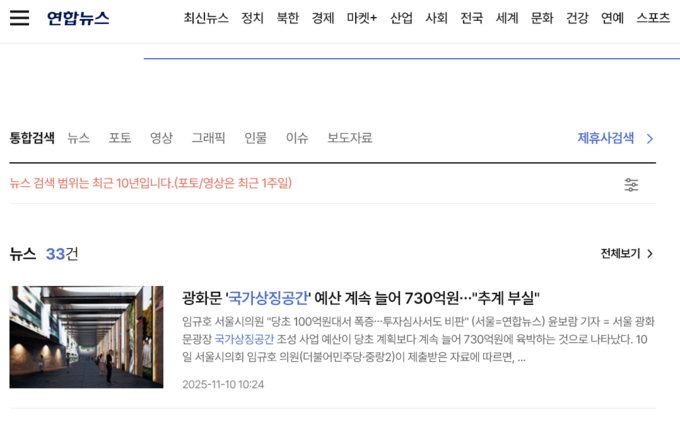 앞서 연합뉴스는 지난 10일 <광화문 '국가상징공간' 예산 계속 늘어 730억원…"추계 부실">이라는 기사를 통해 “10일 서울시의회 임규호 의원(더불어민주당·중랑2)이 제출받은 자료에 따르면, 서울시 투자심사회의에 상정된 이 사업 예산은 지난해 기준 148억원에서 올해 277억원으로 증가했다”며 “또 공유재산심의 내역의 경우 작년 108억원에서 올해 187억원으로 순증된 것으로 파악됐다”고 보도했다.