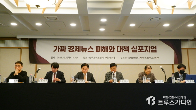 가짜뉴스 척결과 바른언론 생태계 조성 운동을 벌이고 있는 사단법인 바른언론시민행동(공동대표 오정근·김형철)이 ‘가짜 경제뉴스의 폐해와 대책’을 주제로 심포지엄을 개최했다. 이번 심포지엄은 9일 오후 서울 중구 한국프레스센터 19층 매화홀에서 열렸다.