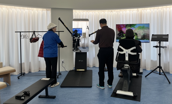 디지털 운동존에는 스크린 파크골프, AR 체육 시스템, 스마트 근력운동기, 꿈의 자전거 등 다양한 디지털 운동기기를 갖춰 어르신이 움직이면서 자연스럽게 디지털 기기를 익힐 수 있도록 했다.