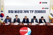 국민의힘이 12일 네이버 등 거대 포털의 독점적 지위 남용을 막기 위한 '포털 불공정 개혁 태스크포스(TF)'를 구성하고, 뉴스 콘텐츠제휴사(CP) 제도 개혁 방안 등을 논의한다. TF는 14일에 정부 측이 참여하는 세미나를 열고 19일 네이버 본사를 방문하는 등 활동을 이어갈 계획이다. TF 위원장은 국회 정무위원회 여당 간사인 강민국 의원이 맡았다. 위원으로는 정무위 강명구 의원, 과학기술정보방송통신위원회 최형두·김장겸·이상휘 의원, 문화체육관광위원회 박정하 의원, 산업통상자원중소벤처기업위원회 고동진 의원이 참여한다. 유관 상임위 4곳 소속 여당 의원 등이 대거 참여한 대규모 TF로 꾸려진 것이다. 원외 인사로 이상근 서강대 교수, 김시관 당 미디어특위 대변인이 활동한다. TF 위원장인 강민국 의원은 이날 오전 서울 여의도 국회에서 열린 TF 임명장 수여식 및 1차 회의에서 "그동안 대형 포털은 대한민국 경제·사회 분야에서 영향력을 키워왔지만, 이에 부합하는 책임감이 부족하다는 게 국민 대다수의 지적"이라며 "사회 각 분야에서 벌어지는 거대 포털의 불공정 행위에 초당적으로 대처하겠다"고 밝혔다. 이어 "플랫폼은 우월적 지위를 활용해 소상공인 위에 군림하지